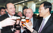 2002年,法国农业展览会上,希拉克与法国啤酒协会主席一起来到青岛啤酒的展厅前,希拉克握着青岛啤酒副总裁刘英弟的手开心的说……