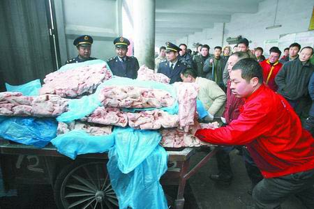 昨日上午11时许,记者来到郑州市北环路水产大世界。 在冷库区,工人正用手推车把这批“问题”猪脸推进冷藏货运卡车。该批猪脸有21托盘,共21.44吨,生产日期为2008年9月24日。由郑州某食品加工厂于2008年12月购入,存放在冷库内。经核实,这批入境货物属于爱尔兰“问题猪肉”批次。中午12时许,这批猪脸被装好、贴好封条,押运至天津,并将移交天津出入境检验检疫局监管,最终将退回爱尔兰。