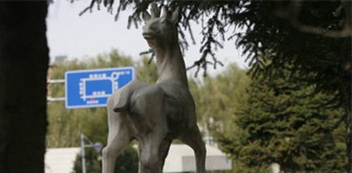 原因 正门有座“回头鹿”雕像
