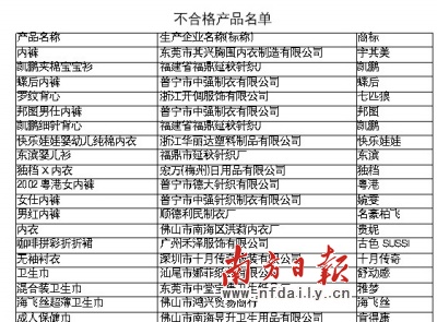 七匹狼罗纹背心、宇美其内裤、快乐娃娃内衣等12款品牌针织内衣不合格。昨天,广东省消委会发布针织内衣产品检测报告,显示合格率仅64.7%,部分产品质量、安全指标问题严重。