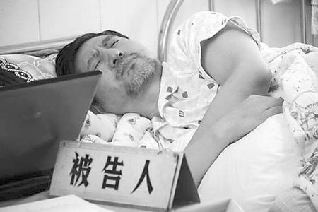 14日上午8时30分,被告人卢金镶躺在病床上接受庭讯,其家属参加了旁听。