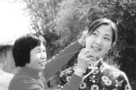 一根棉线,在十指之间转动飞舞,脸上的绒毛被连根拔除。面容变得洁净,皮肤变得润滑细嫩,而且面若桃花,更像一个女人了。这就是一种古老的美容术——绞脸,又称绞面、开脸,其起源已无从追溯。早期婚前绞脸是让新娘脸部光洁美丽,使新郎一见钟情,是旧时代中国女子嫁人之前的一个传统仪式。随着五花八门的美容品登场,绞脸美容法也逐渐消失。