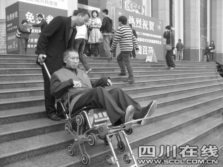 “我很关心‘5·12’地震受灾患者和四川老人,专程赶来赠送5台轮椅作为心意。”昨日下午,“爬楼椅”的发明者——67岁的李荣标在省科技馆将轮椅赠给龙泉阳光城的老龄护理院。李荣标说,接下来还要向灾区捐赠。