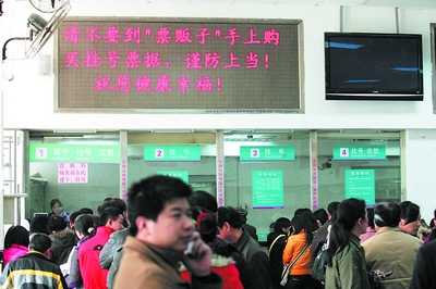 据了解,湘雅医院、湘雅二医院尚未实行实名预约挂号服务。但院方表示,待“一卡通”等事宜全面铺开后,将会尽快实行实名预约挂号。而创发公司目前正与这些医院洽谈合作事宜。12月21日上午,记者在湘雅二医院门诊大厅看到的情况与平时差不多,里面人来人往。在专家号窗口前,记者看到多个科室的专家号已经挂满。这时,几名男子来到记者身后,问记者挂什么科室。记者报出相关科室后,他们均表示当日上午还有号,但每个号需要150元。而正规的一个专家号只要50元。