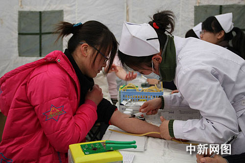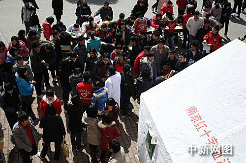 中新网南京3月11日电(陆培洁 朱晓颖)截至11日下午,南京仙林大学城1100余名大学生参与“向南京市血库无偿献血”活动。记者在南京信息职业技术学院内看到,3辆采血车开进校园,前来献血的学生队伍排出十几米远。