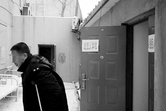 12月7日,记者接到读者投诉后立即赶到皇姑区中心医院。步入门诊大厅后,相继向“挂号处”、“收款处”窗口询问“残疾人在哪鉴定?”,但无人理睬。最后还是在保洁大姐的指点下才发现,门诊楼外的一条小胡同拐角处,挂着一块并不醒目的“残疾人体检中心”的小牌。从小胡同拐进去,再拐绕过一条小胡同,才看到一间平房,房门口聚集着七八名残疾人,有的还架着双拐。“医生说必须交40元!也不知道是啥钱。”一名母亲领着智障的儿子刚走出来,她告诉记者,医生只跟她的儿子说了几句话,就通过了。