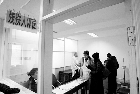 “可是,瞅一眼就值40元?就能鉴定残疾级别吗?”记者问。刘成鹏回答,来鉴定的残疾人实在太多了,比如当日,该体检中心接到的体检表就达近百张。医院配备的医生人手有限,实在来不及一一做细致检查。他说,对于肢残、智障等残疾人,医生大多凭用眼看,通过语言沟通交流就能查出来。