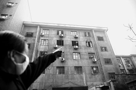 记者在外围看到着火的大楼总共有5层,其中4楼、5楼多间窗户玻璃被烧毁。楼下水文一社区住户王先生目击了救火过程。他告诉记者,大火是从医院4楼烧起来的,并且蔓延到了5楼。“4楼5楼是医院的办公场所,往下是妇科、内科以及病房。”