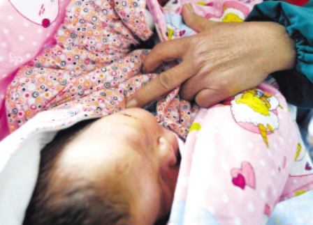 记者发现,女婴的左脸颧骨上,有一道很明显的刮伤痕迹,大约有1厘米左右长,在婴儿幼小的脸上显得十分明显。更令人担心的是,伤痕距离左眼仅有不到一厘米的距离。