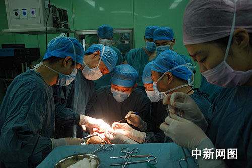 中新网西安6月30日电(记者 冽玮)因面部长着15斤巨大纤维瘤,曾于2008年9月在西安接受肿瘤切除术的山西籍男子张秋元,今日又在西安接受了整复手术。第四军医大学口腔医院9个学科10多位专家教授通力协作,历时9个多小时顺利帮助这位世界罕见的头面颈部巨大神经纤维瘤患者切除了赘生皮肤组织,并进行了面部整容。