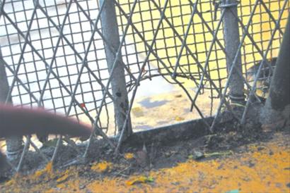 昨日下午3时30分许,鞍山市孟泰公园的熊笼子附近还残存一串血迹,一群人围在熊笼子旁边,笼子中的两只黑熊还在悠闲地散步。熊笼子由两层铁丝网构成,形成的笼子缝隙根本伸不进去手,唯独在笼子的最下方出现一个直径大约10厘米左右的半圆形窟窿,目击者称,“小女孩就是在这个窟窿处被咬伤的,这个窟窿已经存在很长时间了。 ”