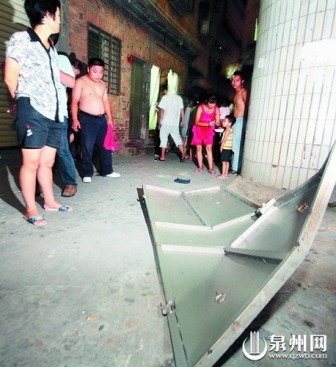 爆炸的房间位于市区乌洲一条狭窄的巷子边上,抢险完毕的消防车正倒车离开。出租房前的巷子路面,满地都是碎玻璃碴,一扇沉重的铁门被炸飞横在路面,铁门严