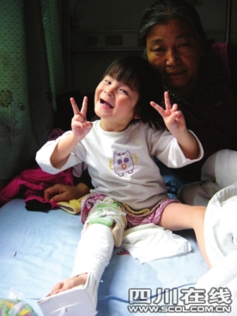 昨日午后,乐山市中区中医院3楼一间病房内,破窗而入的阳光照在竹晓金的脸上,那双水汪汪的大眼睛看起来愈发蔚蓝。这是一种病态的美,但凡患脆骨病的人,眼睛都会变成蓝色,竹晓金无疑也是其中一个不幸者。虽然只有3岁零10个月大,她却已经先后骨折14次。医生说,这种病没有特殊疗法,只有平时加强保护。
