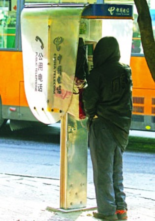 记者随后在万寿路一路口电话亭见到了该男子,他看样子只有25岁左右,身边还放着一个装随身物品的大包,他正熟练的操作着电话功能键,而记者上前询问了他几句话,却发现该男目光呆滞,无任何反应。