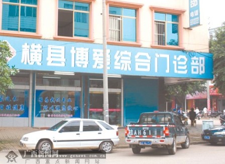 事发地点在横县茉莉花交易市场对面。5月9日下午,许多前来卖花的花农驻足路旁,不时向对面的博爱综合门诊部张望,相互嘀咕着 “医死人了”。记者看到,门诊部的一扇玻璃门被人打碎,门口停着3辆警车,民警正在现场维持秩序。
