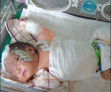初生男婴洗澡时严重烧伤