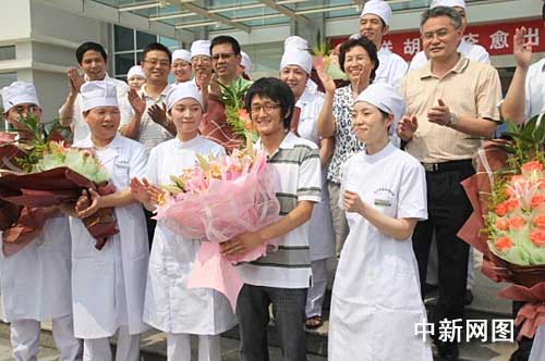 6月10日上午,武汉市定点医疗机构为首例痊愈患者举办了隆重的欢送仪式,武汉市卫生局、汉南区政府等有关负责人参加了欢送仪式,患者父母及其本人对本次救治工作非常满意,感谢政府部门及白衣天使的关怀与精心治疗。