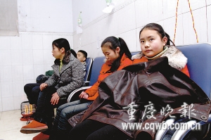 昨日上午11时,潼南县塘坝中心卫生院门诊室,4名学生斜躺在椅上输液。