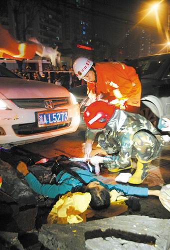 消防官兵正查看被撞倒妇女的伤势