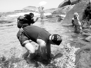 “爬上最高处,从上往下俯瞰大海,令人心旷神怡。”尽管被晒得厉害,可刚从石头高处爬下来的驴友老何却十分畅快,其他驴友的心情也和老何一样荡漾,半个多小时后,驴友们恋恋不舍地离开了这里。