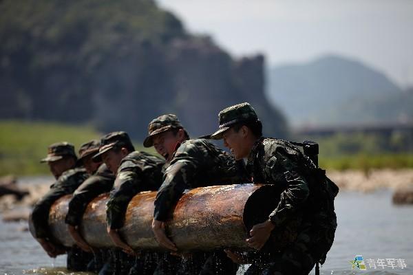 丽水特战武警野外苦练反恐:扛圆木 战水中(图)