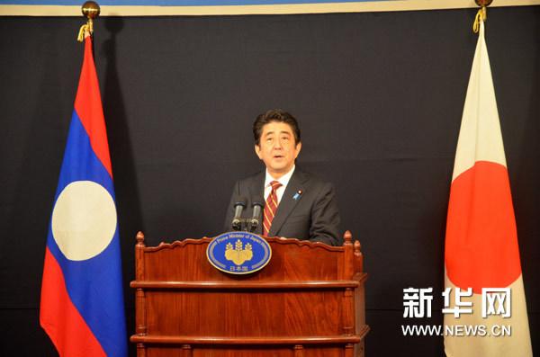 11月17日,日本首相安倍晋三在老挝首都万象举行新闻发布会。安倍晋三当天对老挝展开为期一天的访问。在去年底就任日本首相后,安倍已完成了对东盟10国的访问。新华社发(彼得·汤姆森摄)