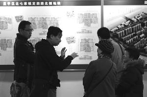 昨天,在市规划展览馆2013年北京市第一批自住型商品房项目规划设计方案展览现场,参观者在设计图前进行交流。本报记者 饶强摄