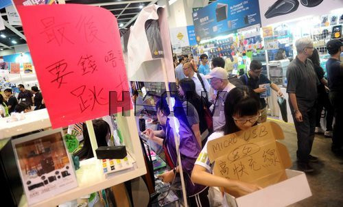 香港一连4天在湾仔会展中心举行的香港计算机通讯节8月25日下午闭幕,有不少参展商在闭幕前减价促销产品。香港中通社图片