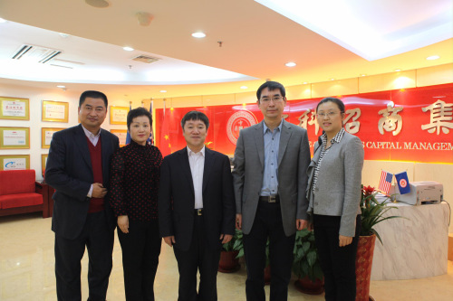 哈工大深研院院长姚英学、中科创大总经理刘继军、哈工大深研院继续教育学院执行院长王燕、中科创大副总经理刘海光、哈工大深研院办公室主任助理方灵敏在中科招商合影