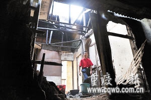 连日阴雨,南岸区涂山镇野猫溪正街陈然烈士故居(挺进报旧址)部分屋顶连续垮塌,在此居住的居民不敢回屋睡觉。