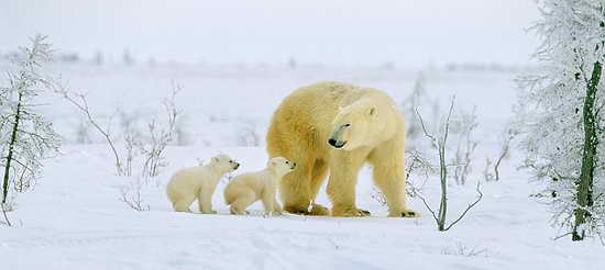 安迪-鲁斯称:“母北极熊会躺在一些小树上,北极熊幼仔会爬在它的身上,与它玩耍。看到这一切使我感到很美好。母北极熊对它的幼仔非常温柔,总是用自己的体温来防止它们受冻,容忍幼仔咬它的耳朵。”(周翔)
