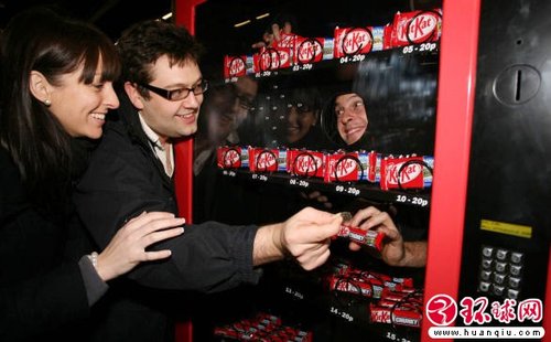 顾客从自动售货机里买东西,这似乎是一件再平常不过的事情了。但是最近一段时间,安置在伦敦维多利亚火车站火车站内的一台售货机,却引来很多人的围观。这究竟是怎么一回事呢?原来,秘密在这里,售货机后面藏了一个大活人。顾客投进硬币后,藏在后面的人会问顾客想要哪个商品,之后再把商品扔进洞里,顾客取出商品后,向售货机竖起大拇指,表示交易完成。人工售货机是由英国的一家食品公司安置在这里的。公司市场部经理表示,之所以这么做,是希望每天都像机器一样忙碌工作的/都市人,能从与陌生人的交流中获得快乐。