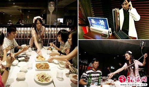 台湾有家主题餐厅经营风格另类,服务生穿上护士服,餐桌上还有提供饮料的“点滴”。进入餐厅后,客人甚至可以要求坐在轮椅上,请服务生帮忙推进去。餐厅内墙壁上挂X光片、视力测量表,饮料则在点滴瓶内。另有试管饮料,由服务生推着“护理推车”,用针筒把“试管酒”饮料“注射”到消费者嘴巴里。而饮料的名字噱头十足,像堕胎用的RU486、镇定剂、玻尿酸、避孕药、威而刚、威而柔都有。