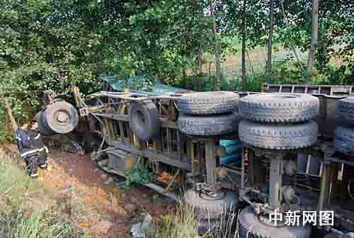 大货车翻身跌落沟底 两驾驶员命丧甬金高速