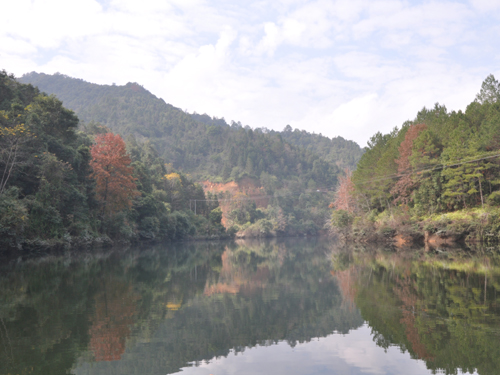 一区是长潭自然保护区,它属于省级自然保护区,距县城5公里,这里一川绿水,两岸青山,有“形似巫峡,景似漓江”之称,号称广东“小九寨”。长潭旅游区内动植物资源十分丰富,山峦耸峙,绿海无边,层林叠翠,花果飘香,荟萃了许多珍贵的生物资源与物种,其中较为特别的植物有:盘龙生长着大小400多株距今1.6亿年前恐龙时代被称为“植物活化石”的国家二级保护植物桫椤;洪畲笔山脚有高达30多米,胸径2.3米,名叫白花笼的“千年古树”;龙飞畲有连片的国家二类保护植物任豆群落,又是国家一级保护动物云豹的活动区域;另外还有“母子树”、“夫妻树”、“桃园三结义”树等较为特别的树木。旅游区内森林茂密,地势险峻,形成了一线天、石乱湖、上山塘水口、桐子窝、上龙大坑里、盘龙石简下等多处美不胜收的天然瀑布景观。长潭水库库面宽阔,水深波平,库中鱼欢虾跃,沿岸山水交融,草色青青,树木葱葱,宛如镶嵌在蕉岭大地的蓝色明珠。其空气负离子含量达每立方厘米18000多个,置身其间,心旷神怡,是休闲度假、泛舟垂钓的最佳选择;