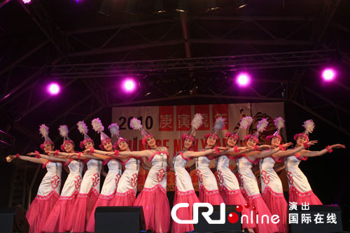 藏族演员阿旺演唱的歌曲《天路》,悠扬的旋律仿佛把人带进了雪域高原。中央民族歌舞团副团长丁伟导演介绍说,参加这次演出的主要是中央民族歌舞团的维吾尔、藏、苗、侗等各个民族的演员,节目也是丰富多彩。他说:“通过这个活动,一个我们可以介绍中国是个多民族,而且是个非常和谐非常团结的一个国家。另外一点,中国的少数民族的艺术也非常的绚丽多彩,通过我们的演出,除了向本地的华侨华人拜年,也可以向国外的观众介绍这样绚丽的歌舞。”