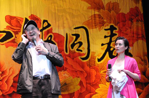 中新网2月25日电 据阿根廷《新大陆周刊》报道,2月24日晚,“文化中国•四海同春”南美洲艺术团在阿根廷首都布宜诺斯艾利斯举行了两场气势恢弘的演出,受到旅居阿根廷华人华侨的热烈欢迎。“文化中国•四海同春”南美洲艺术团团长马儒沛、中国驻阿根廷大使曾钢及全体使馆官员、旅阿华人华侨、中资企业、留学生代表6000多人观看了演出。图为黄宏和段小洁合演小品《早点回家》。