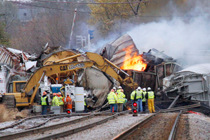 美国一列火车出轨起火