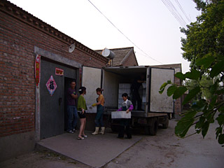 晚上六点钟,赵梅(化名)准时来到了位于通州区台湖镇田府村373号,一辆中型货车缓缓驶入了这座民房旁边的车库,随着后车厢门的打开,她和其他8个工人熟练搬起装满使用过的“餐具”的箱子,从原本紧闭的大门里进去。