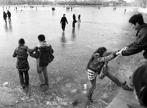 “什刹海前海冰面上有很多人在溜冰,有些地方的冰面已经开始融化了,真是太危险了。”昨日,有读者向本报反映。