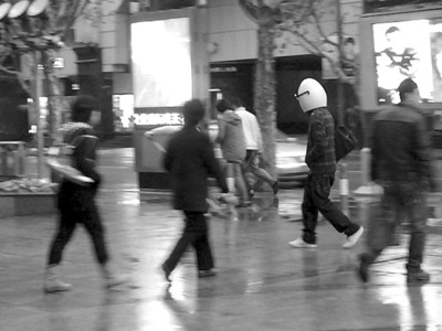 昨天,天涯论坛上一组“蛋头人”的照片“雷”倒了一大批网友。在照片中,“蛋头女”穿着职业女性的衣服,身披披肩,手拎提包,流连在各大商场。可她头上硕大的蛋壳以及蛋壳上顶着的黑框眼镜,却不由让路人纷纷侧目。来福士一名保安告诉记者,“蛋头女”前天下午两三点出现在来福士门口时,引发了很多年轻人追捧,要求合影者不计其数。