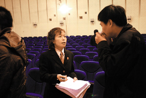 3月2日,在市五中院,袁文(左)正在接受市民咨询。本报记者 张锦旗 摄
