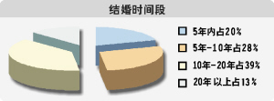 袁文法官从事审判工作24年,审理过无数离婚案。昨天,袁文拿出了一份统计表,那是市五中院针对近期正在该院和渝中、南岸、巴南区法院审理的50对离婚案件中夫妻的婚龄。其中,结婚10年-20年的离婚夫妻,占了近4成。(见示意图)(制图/张异 记者 肖 玉 实习生 安利平)