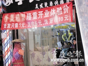 近日,渝北龙溪街道电子校附近一家新开的理发店打出广告,到该店烫发只需1元。如此“好事”,是真的吗?