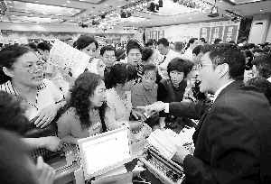 在广东率先实施“国民旅游休闲计划”之后,倡导“3+2+2”模式的广东版“五一”七天黄金周也有望再现。虽然“五一”七天黄金周重现的消息尚未落实,广东旅游业已经未雨绸缪做好准备,市内多家旅行社推出了“五一”出境游线路,而广东市场针对“五一”黄金周的首场旅游热卖会,昨日在中国大酒店举行,多条针对白领市场的新线成为了“哄抢”的目标,热卖会现场最吸引广州市民的特惠的2699元“台湾5天游” 现场报名人数已突破1000人。 (记者 朱元斌 通讯员 何玉珊 摄影报道)