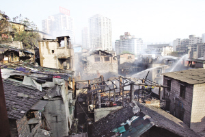 穿插在老屋间的老化电线,成了一场火灾的帮凶:昨日下午3点多,渝中区十八梯至瞿家沟附近失火,火苗沿着电线蔓延,多栋民房被烧毁,逾千人被紧急疏散。