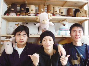可爱的毛绒玩具,印象中总是女孩子们的专利。不过,陈勇、王召宇、董百林这三名二十七八岁的男生,却对毛绒玩具有着非同一般的喜爱,他们甚至把这种喜爱融入到自己的事业中。为了实现自己的梦想,他们成立了一家公司,专门做自己设计的各种可爱毛绒玩具。从两年前大家合计着一起做玩具到现在,公司渐渐形成了一定规模,员工请了六七个,玩具也受到了不少人的喜爱,照理应该是地道的生意人了,而这三名对玩具痴迷的大男生,依然保持着童心,在他们看来,只有这样,才能保持自己的创意,才能让自己的玩具得到更多人的喜爱。