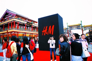 今天上午,瑞典著名服装品牌H&M在京首家专卖店前门店开业。昨晚该旗舰店在前门大街举办了隆重的开幕典礼。近500米的红毯从前门大街北口一直铺到H&M门口,而最终乘坐当当车前来助兴的明星们更是引起现场轰动。 (记者于海波 谷多摄)