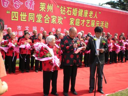 60载风风雨雨,60载人生坎坷。5月25日上午,莱州广场“十二生肖”绿地上,幸福与感动缓缓流淌,20对携手60载风雨春秋的钻石夫妇,在此发表了自己的幸福感言。