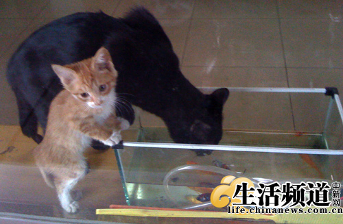 趣图:小猫之意不在水,在乎锦鲤二三也?(2)